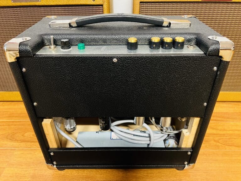Output: A Single 6V6GT output valve as used in all the vintage Single Ended low wattage amps from the 50’s, but we couldn’t just copy it directly, Amwatts biases the 6V6GT to approx. 90- 100% dissipation unlike the 50’s counterparts which were over biased , This gives more headroom and nicer bell like qualities to the tone plus adds longer life to the valves. Combine this with a Jupiter 10” ceramic vintage style speaker and you have all the ingredients of yesteryear combined with modern day versatility.